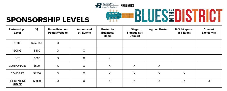 2026 BLUES SPONSORSHIP LEVELS