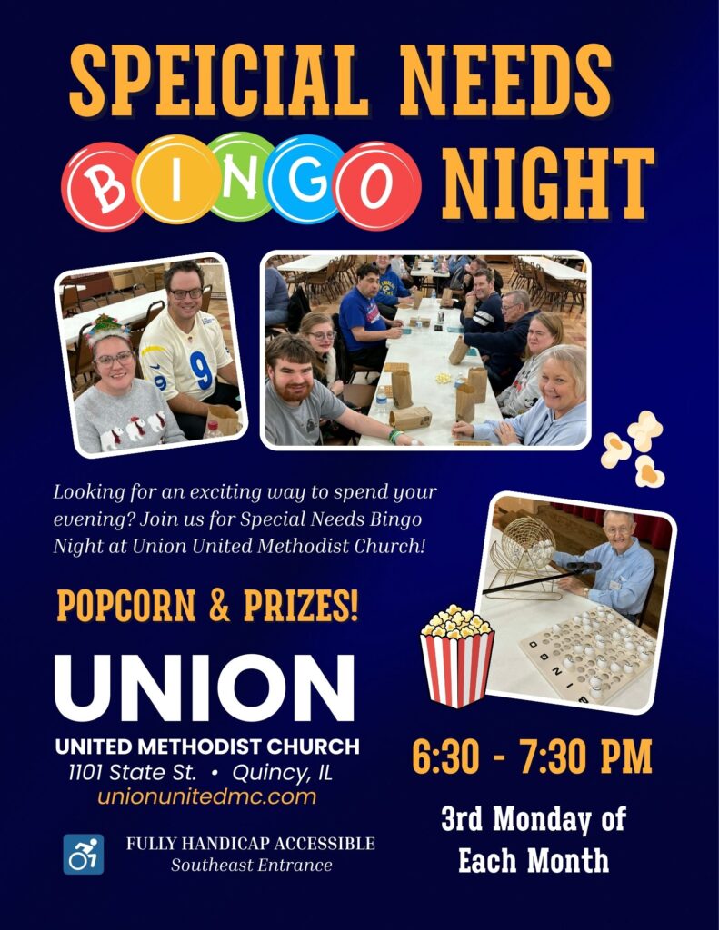 Looking for a fun and welcoming way to spend your evening? Come join us at Union United Methodist Church for Special Needs Bingo Night in Jensen Fellowship Hall!