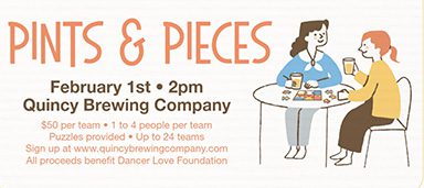 Think you’ve got the fastest puzzle crew in Quincy? Join us for a 500-piece puzzle competition where proceeds benefit the Dancer Love Foundation πŸ’™ πŸ‘₯ 24 teams max πŸ’΅ $50 per team (1–4 people) πŸ•‘ Starts promptly at 2:00 PM 🎲 At 2PM, a teammate will blindly draw your team’s puzzle 🏁 First team to […]