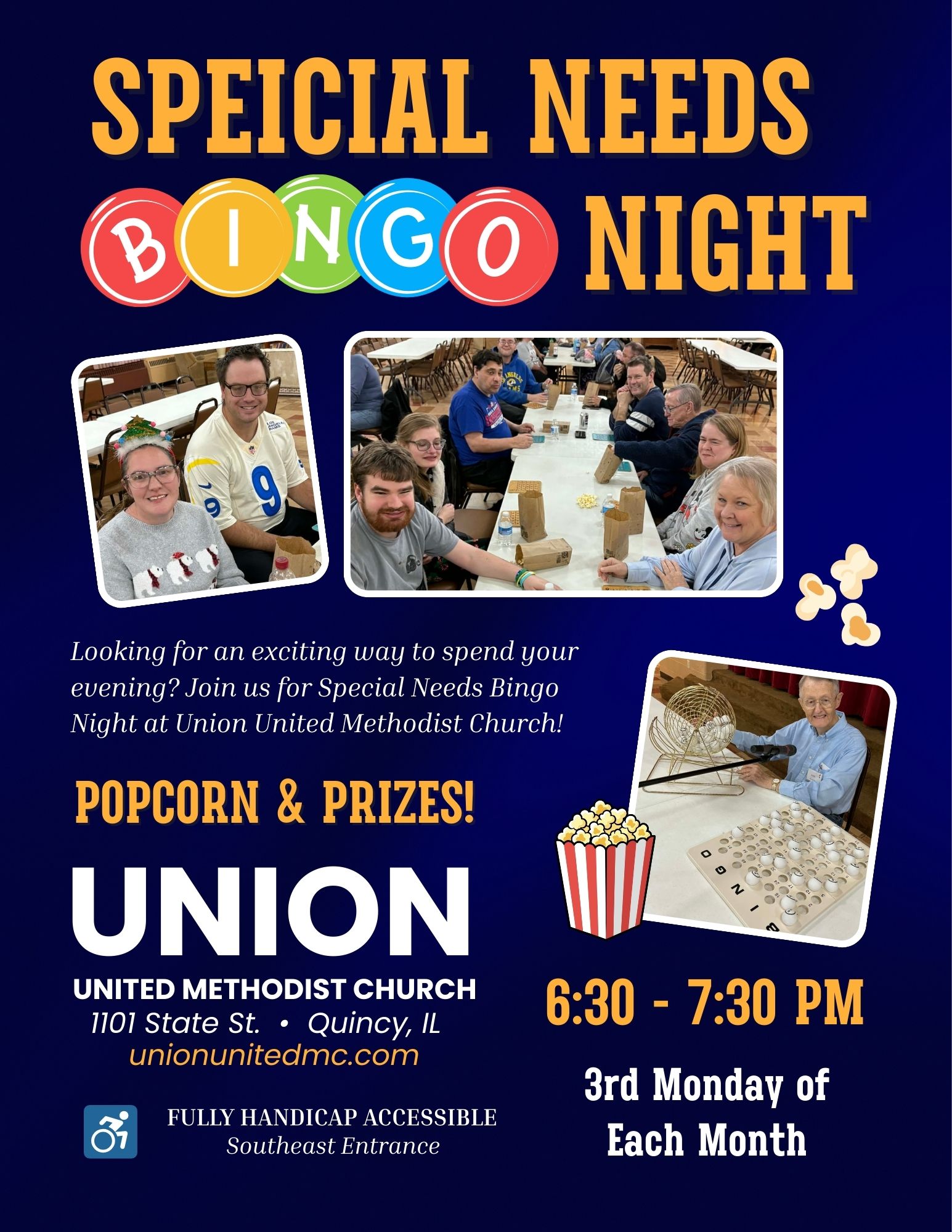 π Special Needs Bingo Night! π Looking for a fun and welcoming way to spend your evening? Come join us at Union United Methodist Church for Special Needs Bingo Night in Jensen Fellowship Hall! π When: Every 3rd Monday of the month π‘ Time: 6:30 PM β 7:30 PM π Where: Jensen Fellowship Hall, Union […]