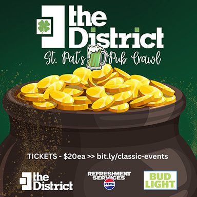 The District St. Pat’s Pub Crawl is a great way to celebrate the season with friends and get to know numerous bars in The District! Participating bars offer special drinks and many have live music and special menu/food items. Pub Crawlers enjoy riding party-buses–complete with free St. Patrick’s Day themed give-a-ways and swag–from one bar […] |